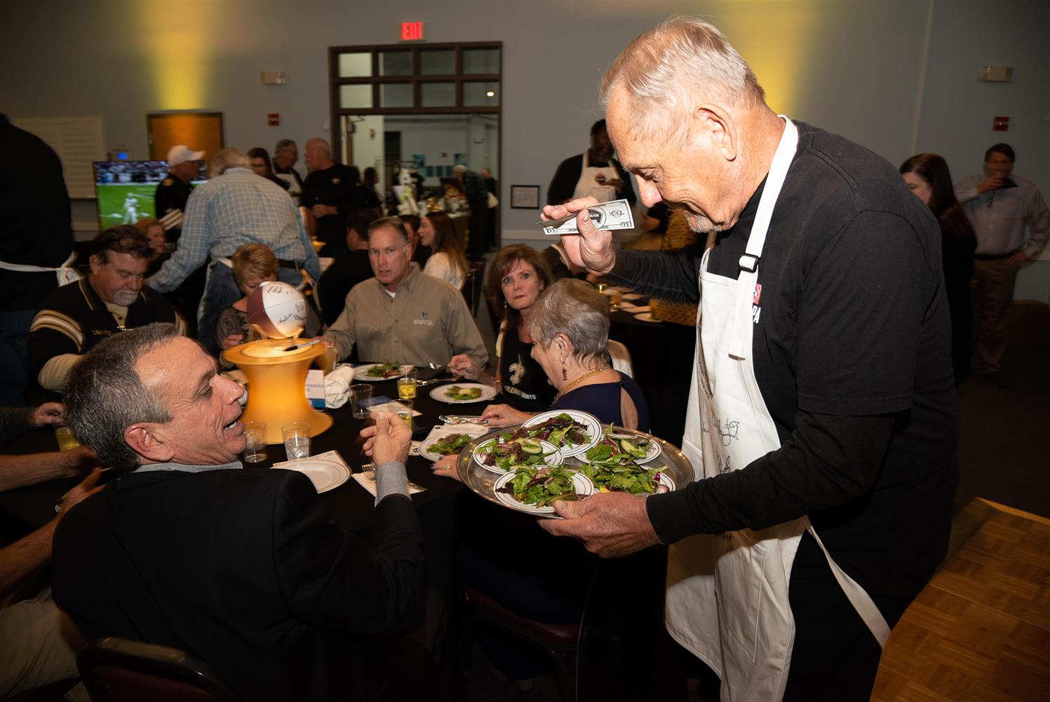 During the game, members of the New Orleans chapter of the NFL Players Association serving as waiters circulated among attendees.