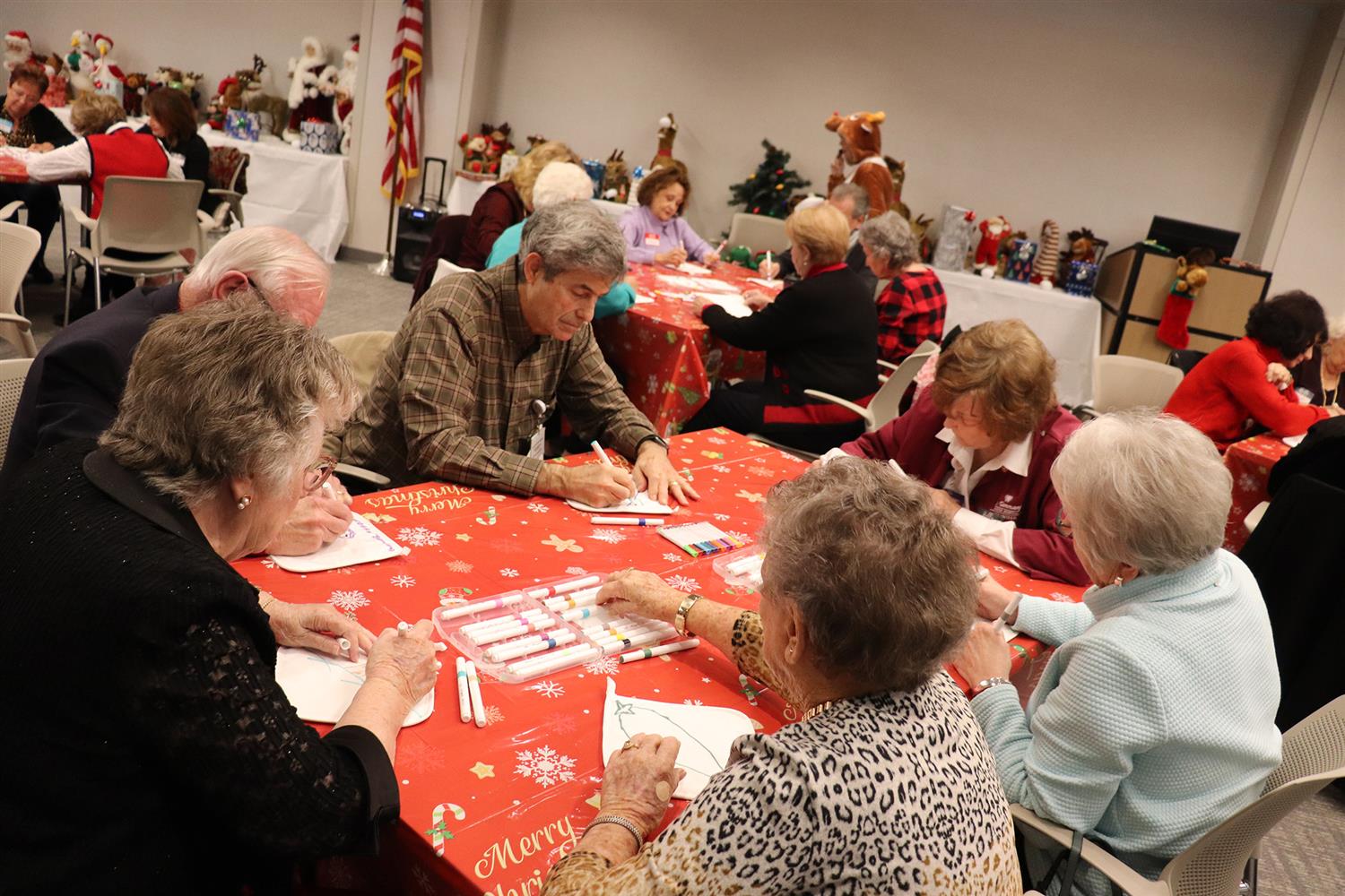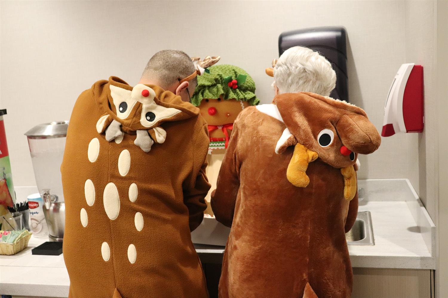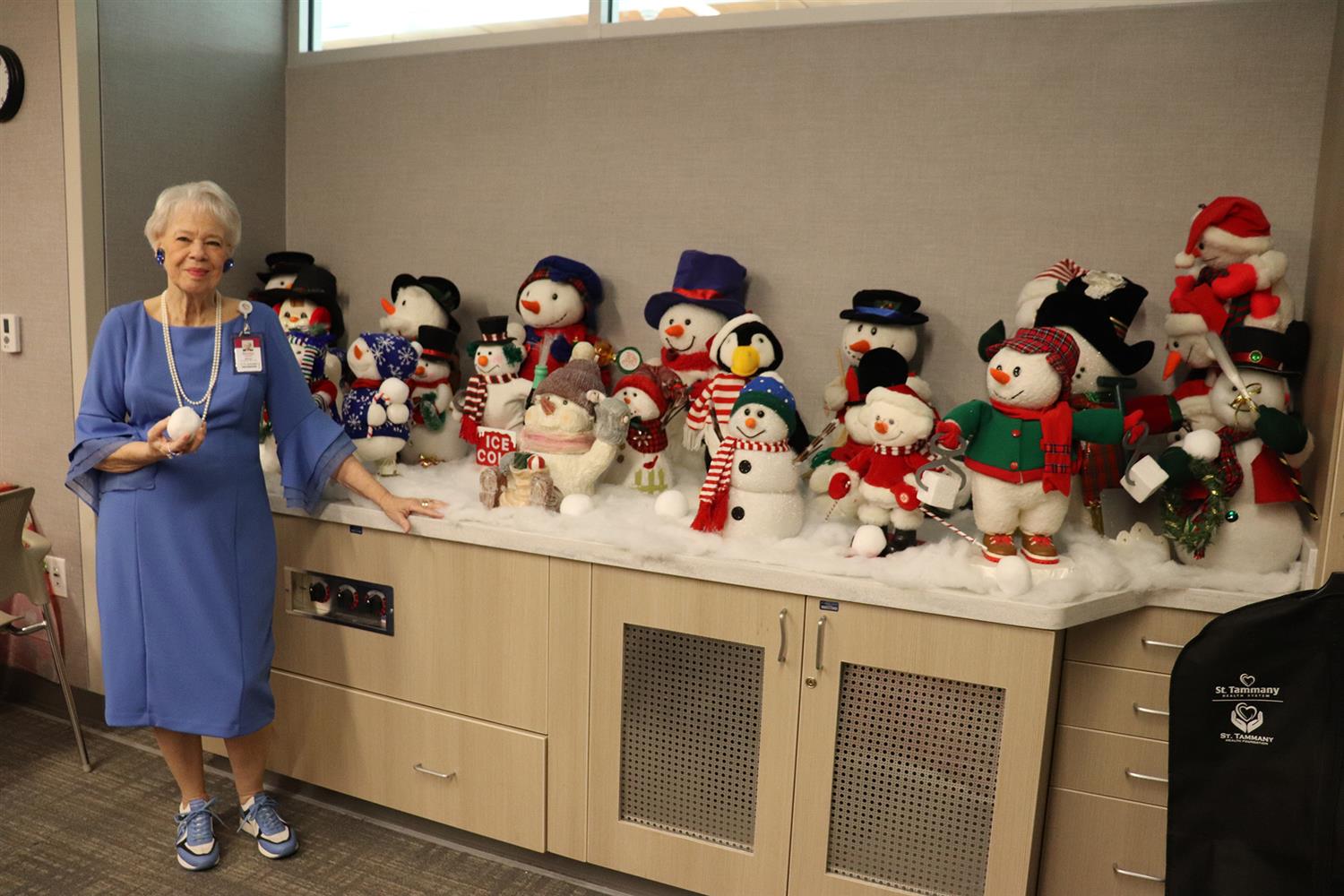 Adding to the festive atmosphere was a whimsical display of stuffed Christmas figurines arranged throughout the room. The collection, drawn from the private trove of St. Tammany Health System Volunteer Services Coordinator Shirley Primes, gave the room a cheerful, holiday-home feel. Primes herself leaned fully into the theme, donning Rudolph the Red-Nosed Reindeer regalia as she led the day’s fun.
