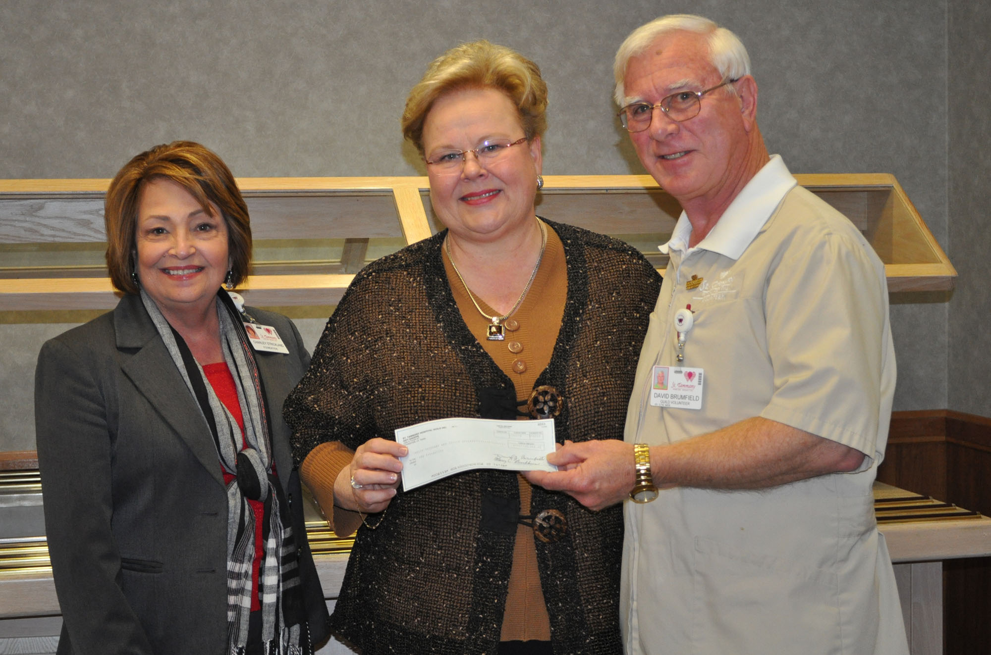 PHOTO IDENTIFICATION: St. Tammany Hospital Guild President David Brumfield presents a $12,000 check on behalf of the Guild to St. Tammany Hospital Foundation Executive Director Charley Strickland, left, and St. Tammany Parish Hospital CEO Patti Ellish.