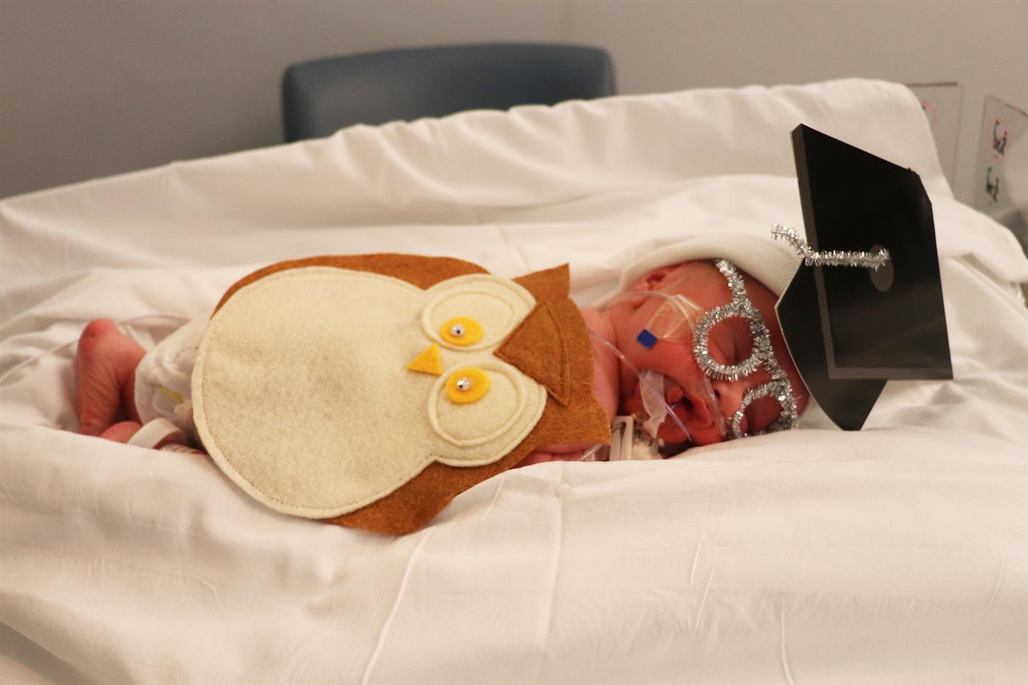 Adelyn Lewis, one of a pair of twins in the STHS NICU, shows off her Halloween finery.