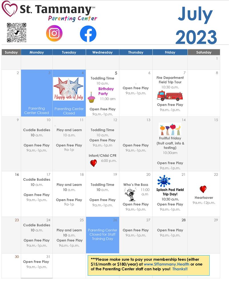Scroll down for a quick look at the events and activities on tap for July 2023 at the St. Tammany Parenting Center.