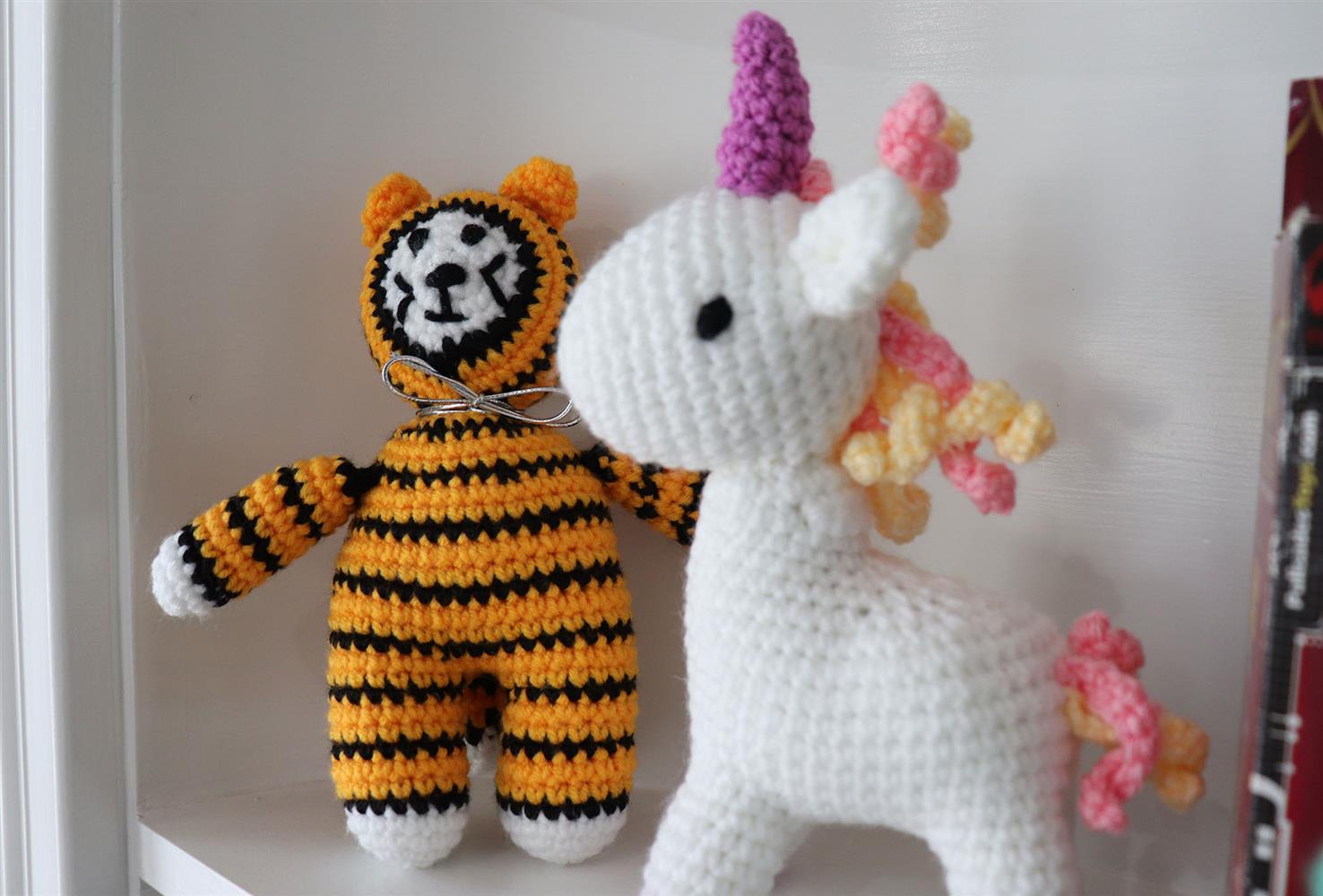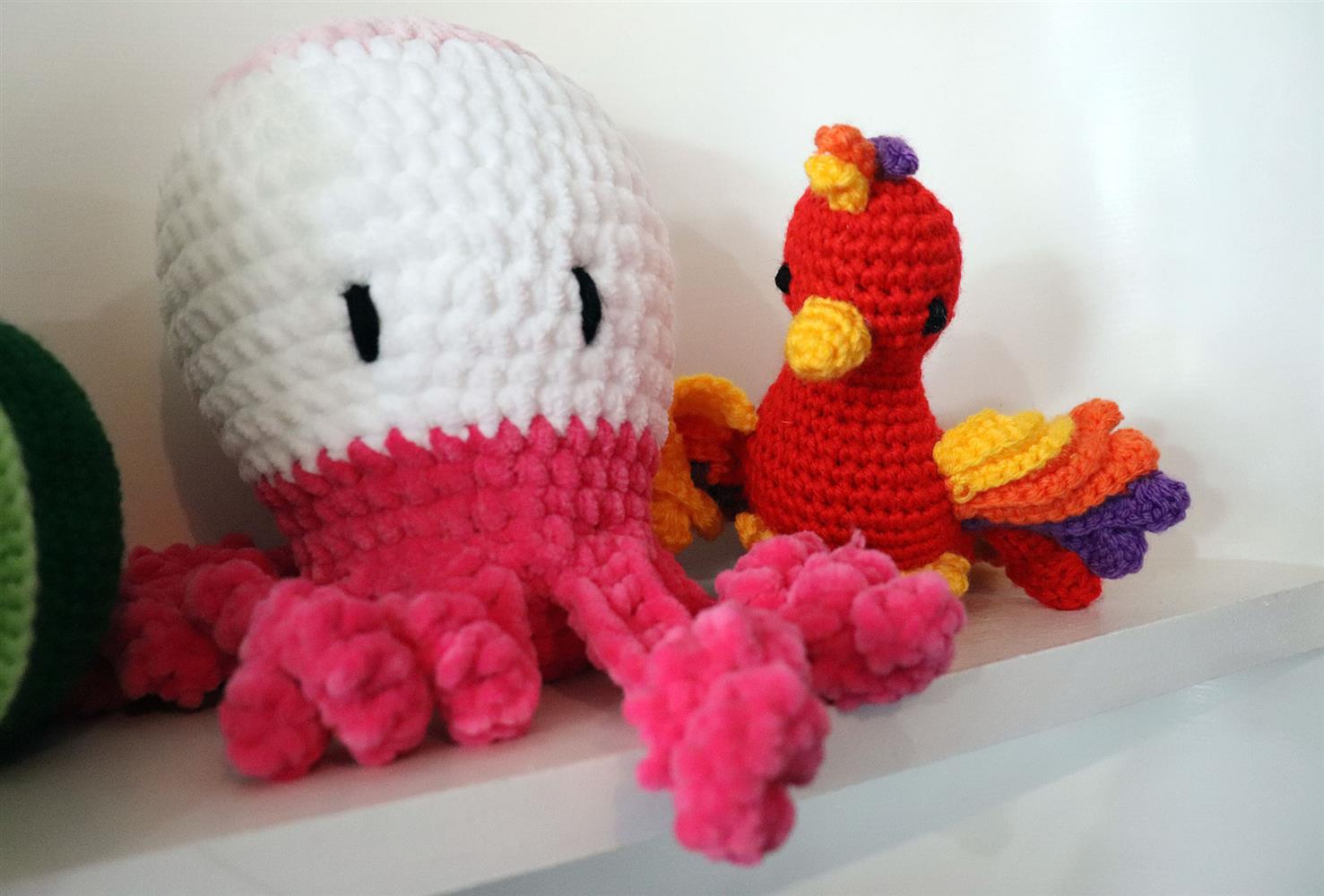 That “sure” turned into a calling. Depending on the pattern and materials, a single animal can take her anywhere from a few hours to a full week to complete. “The time depends on what size hook or needle I use,” she said.